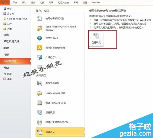 點擊【文件】-【保存并發送】-【創建講義】