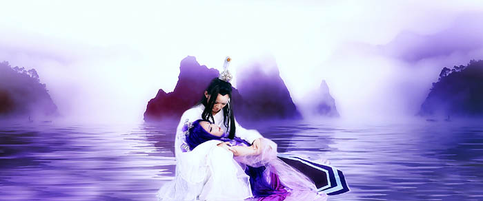 效果圖畫面非常簡潔:背景為非常大氣的山水圖片;加上古裝人物圖片,給畫面增添了故事情節;后期再添加文字和裝飾素材,畫面就非常唯美。