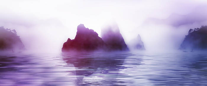 2、我們來制作背景,搜集一些有關于中國風的素材圖,關鍵字可以搜古典、夢幻、山水等關鍵詞,然后進行潤色,營造武俠仙境的感覺。