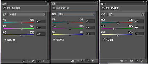 色彩平衡調整組。(數值可自己看著定,或者按作者的滑塊來,不一定得一模一樣)。
