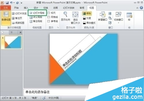 “上方菜單選擇‘視圖’——‘幻燈片母版’選項”,如下圖綠色框框出。