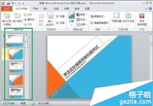 進入幻燈片母版以后可以看到左側(綠框選處)有多種版。