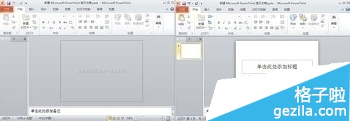 雙擊打開ppt文檔,此時文檔內為空白的(下圖左),在文字提示處單擊建立第一張幻燈片(下圖右)。
