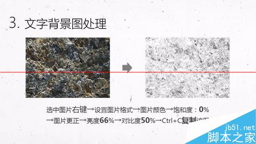 3、文字背景圖處理。將圖片飽和度設置為0%→亮度66%→對比度50%→Ctrl+C復制該圖。
