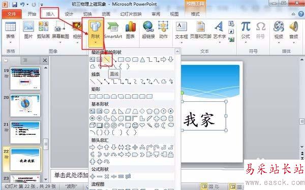 2、選擇插入下的形狀,并在其中選擇直線,如下圖: