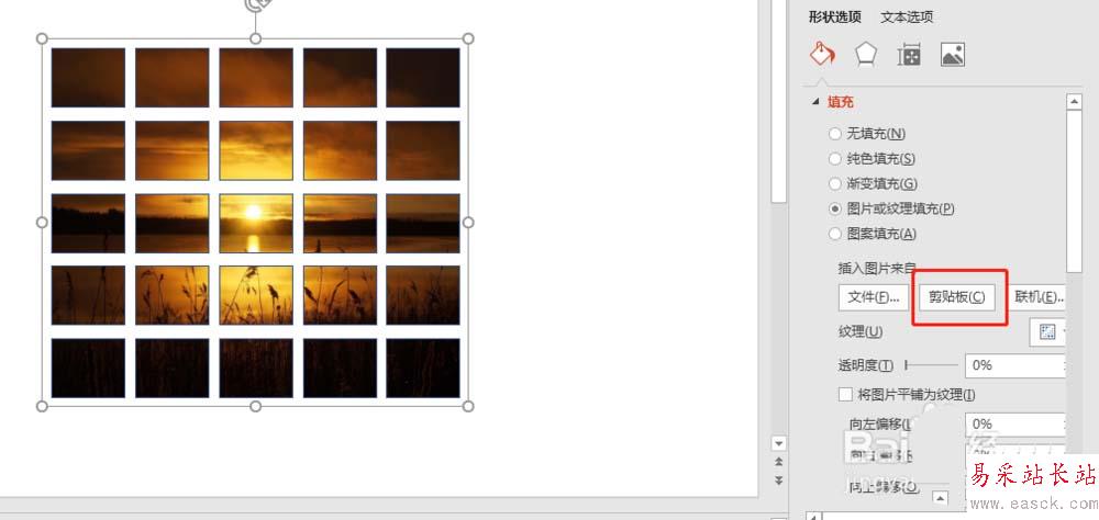9、在填充里面選擇“剪貼板”,就可以看到我們的格子效果圖片