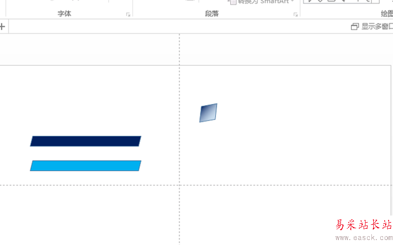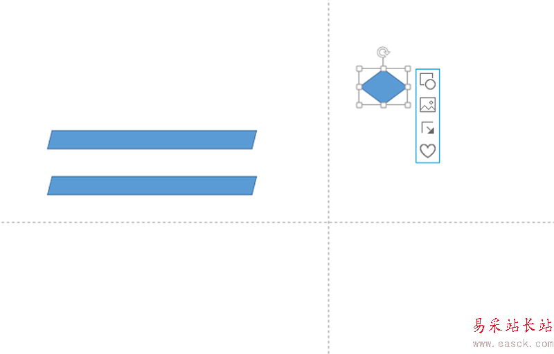 2、接著調出設置形狀格式窗口,設置菱形為漸變顏色,兩個平行四邊形分別為深藍和淺藍。