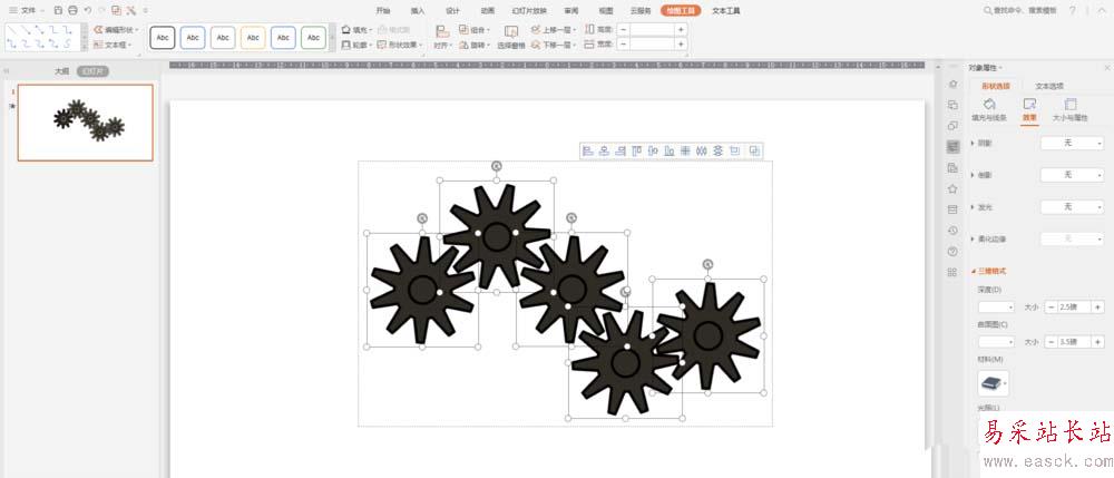 5、為齒輪圖形設(shè)置三維格式,這樣更具質(zhì)感。