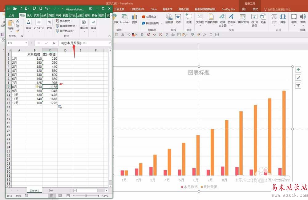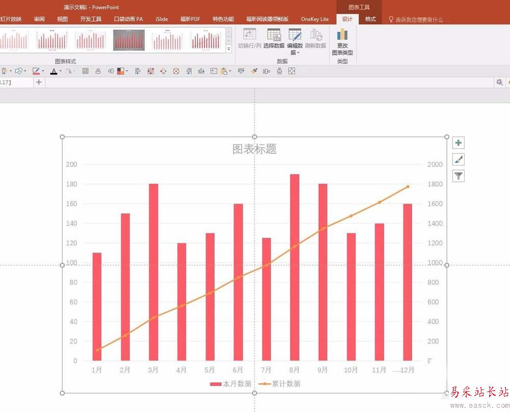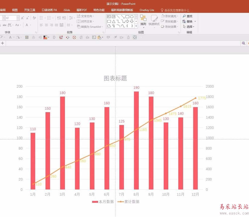 以上就是ppt制作帶累計數據走勢的柱形數據圖的教程,希望大家喜歡,請繼續關注錯新站長站。