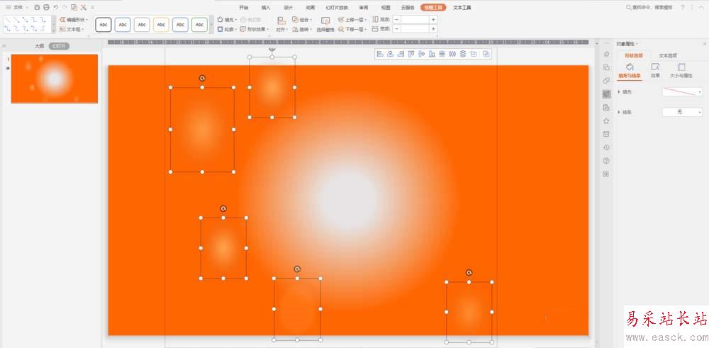 2、插入幾個(gè)橢圓形狀,調(diào)整位置和大小,形成“光斑”元素。