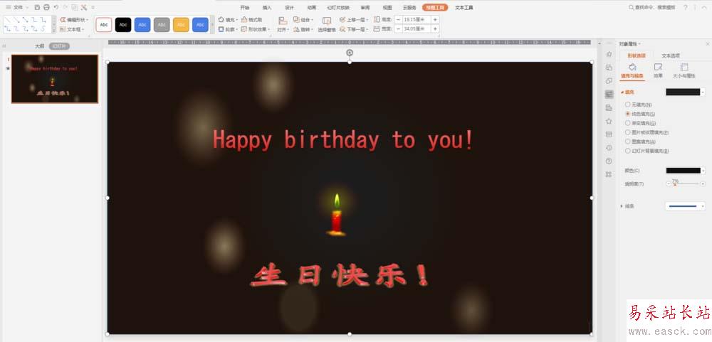 以上就是ppt制作燭光搖曳的生日祝福場(chǎng)景的教程,希望大家喜歡,請(qǐng)繼續(xù)關(guān)注錯(cuò)新站長(zhǎng)站。