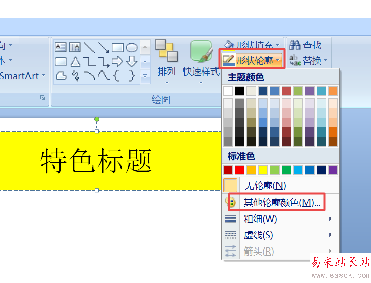 5、之后我們點擊形狀輪廓,彈出的界面,我們點擊其他輪廓顏色;