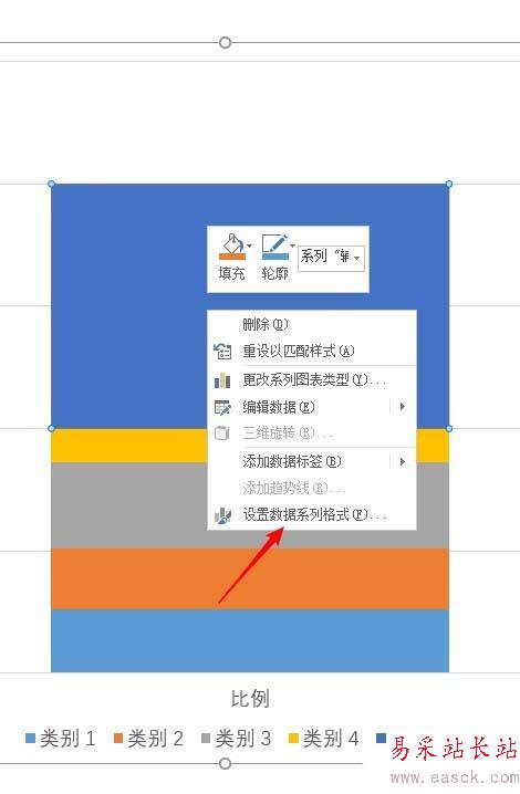8、左鍵點擊選中輔助數據所在的柱形,點擊右鍵“設置數據系列格式”。