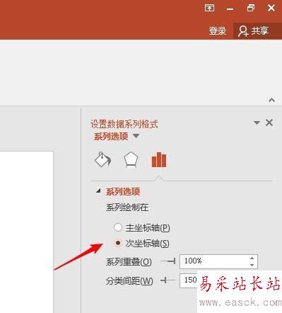 9、在右側打開的設置窗口中,點擊“次坐標軸”。