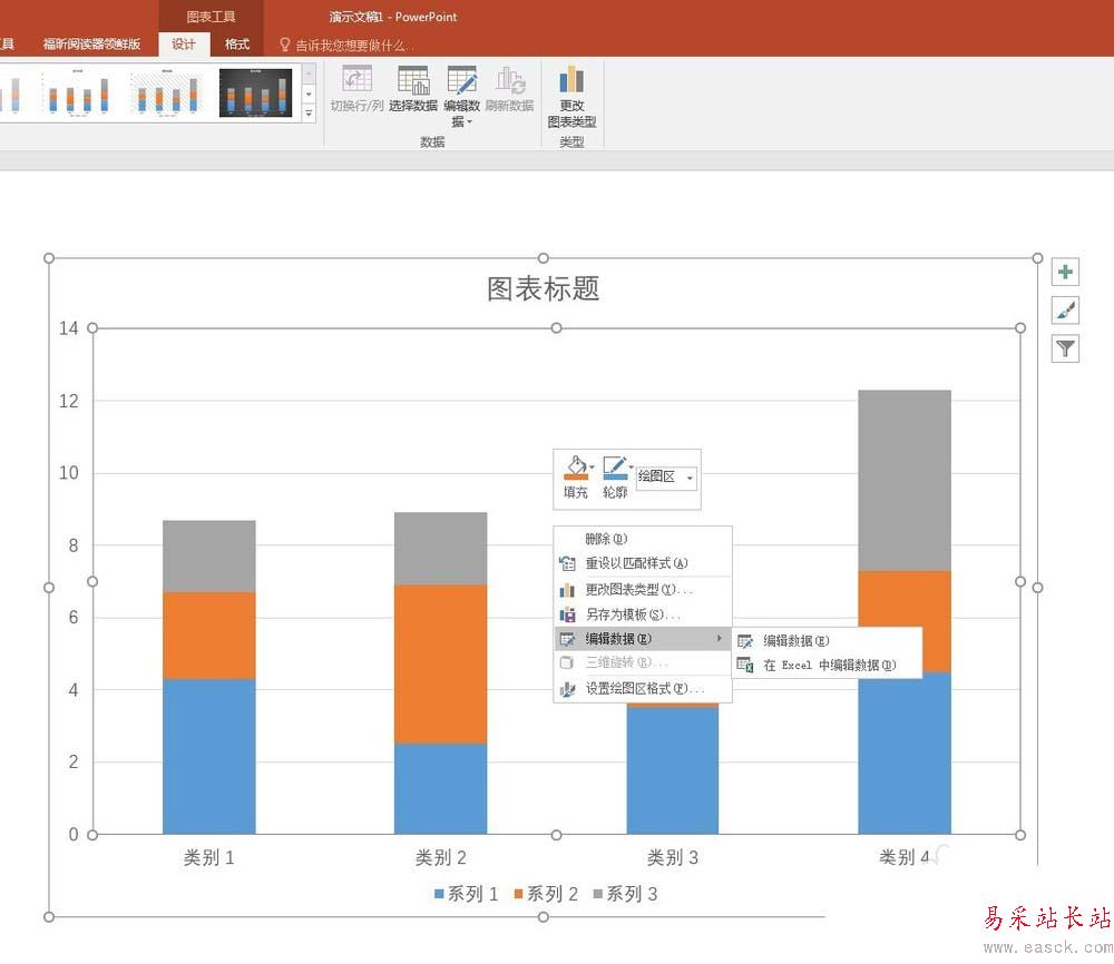 3、在圖表上點擊鼠標右鍵,點擊“編輯數據”—“在Excel中編輯數據”。