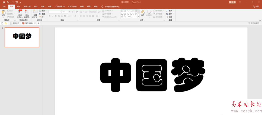 4、在文本框中輸入文字內(nèi)容,如中國夢。設置格式:字體、字號等。然后復制文本框,粘貼為圖片后保存。