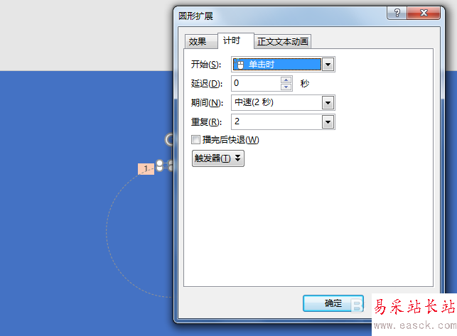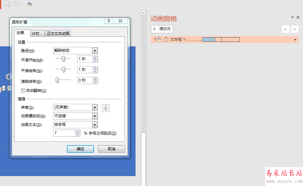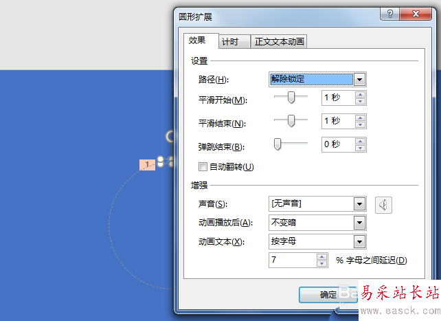 4、之后呢,就是加入動畫了。直接插入一個【路徑動畫】-【圓形擴展】即可,一開始橢圓的,需要自己調節成正圓,然后設置【計時】參數即可。