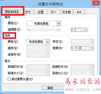 2、在“設置文本框格式”的選項卡中,點擊“顏色和線條”,設置文本框的線條。