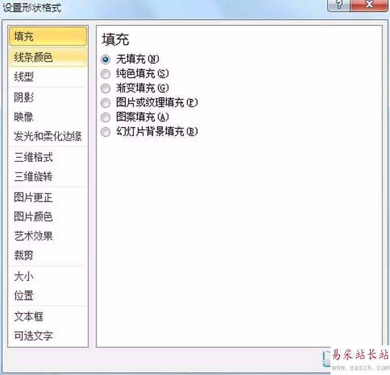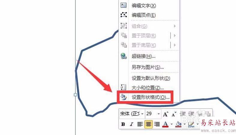 4、待圖形閉合之后,如何判斷是否是真正的閉合呢,可以選中圖形,點擊鼠標右鍵,在右鍵菜單選擇“設置形狀格式”,進入“設置形狀格式”窗口后,設置填充為有顏色填充,之后確定,檢查圖形能否正常完整填充,如果正常完整填充,說明閉合正常,如圖