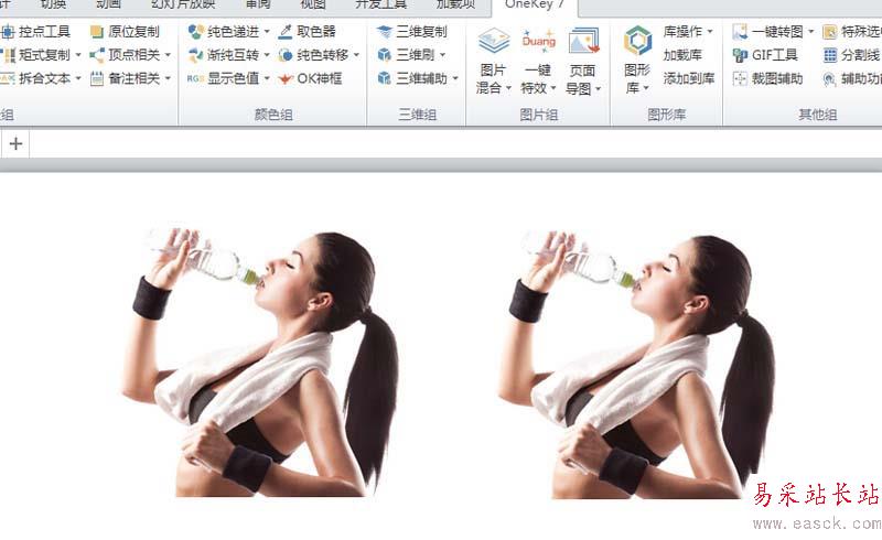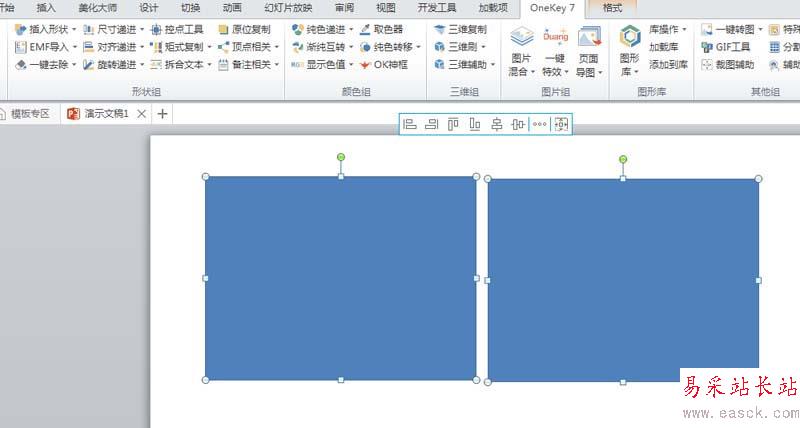 4、執行ctrl+a組合鍵選擇兩張圖片,執行onekey-插入形狀命令。
