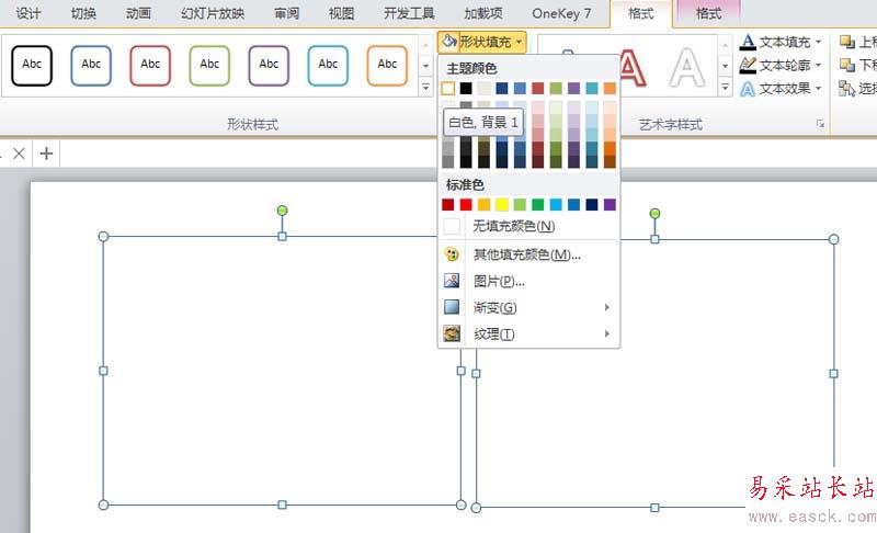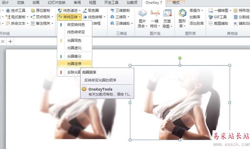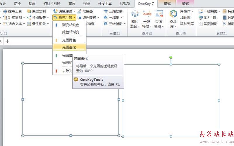5、執行格式-形狀填充命令,設置白色填充,執行onekey-漸純互轉命令,選擇光圈虛化命令。