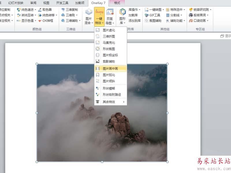 2、選擇圖片,執行onekey7-一鍵特效-圖片畫中畫命令。