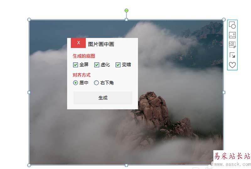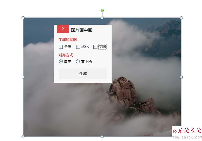 4、設置生成的底圖為全屏,虛化,變暗,對齊方式為居中,點擊生成按鈕。