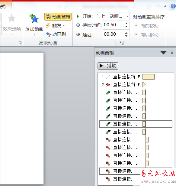 3、第二步動畫設(shè)置完之后,點擊動畫播放,然后記住直線上升的最高位置。接著,在這個位置的周圍插入幾條直線。