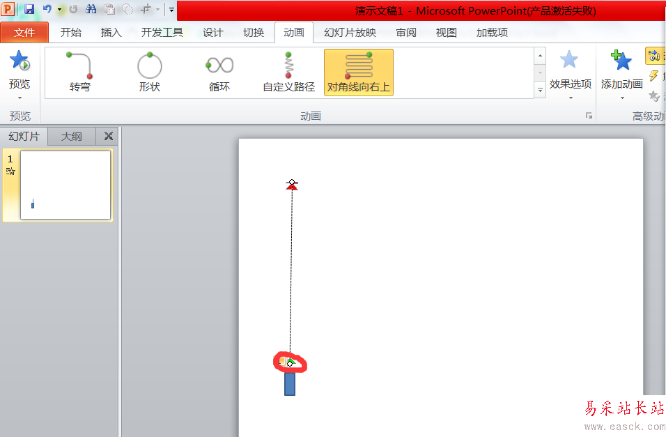 2、對直線設(shè)置動畫效果,動畫為“直線向上”。