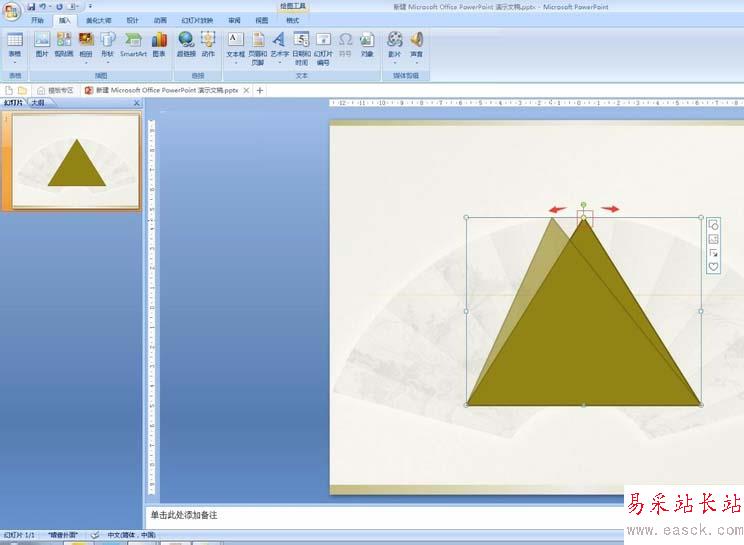 PPT文檔中怎么通過合并形狀制作震憾三角形效果?