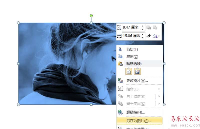 6、選擇矩形并刪除,查看效果,右鍵單擊圖片從下拉菜單中選擇圖片另存為命令,將其保存即可。