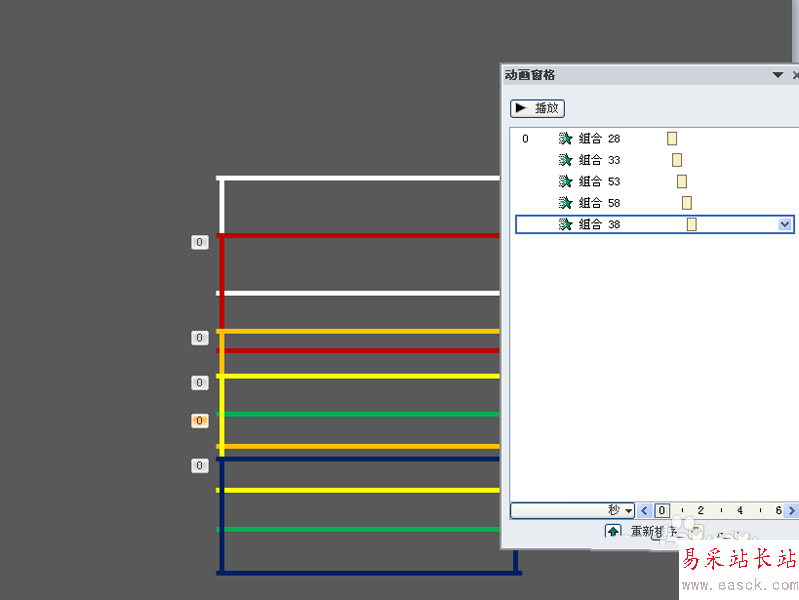 6、選擇后四個矩形,執行動畫-添加動畫命令,選擇擦除動畫,設置效果選項為自左側。