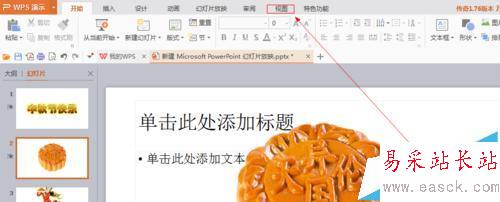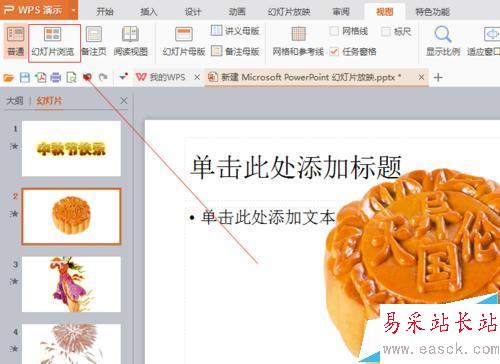 3、如圖所示,我們點擊箭頭所指的的“幻燈片瀏覽”這一項。