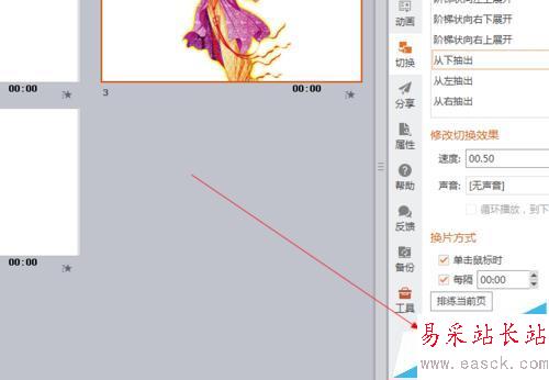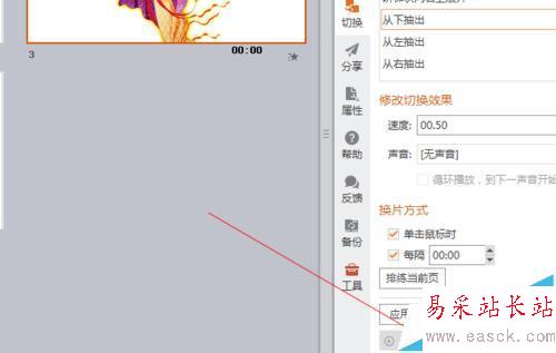 6、如圖所示,我們點擊箭頭所指的“應(yīng)用于所有幻燈片”按鈕。