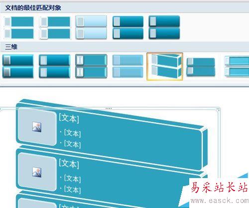 4、點(diǎn)開樣式的下拉箭頭,有PPT推薦的最佳匹配和三維樣式。選擇一種后同樣出現(xiàn)相應(yīng)的預(yù)覽。