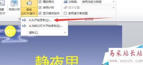 2、在ppt菜單欄 找到,幻燈片放映——錄制幻燈片演示——從頭開始錄制