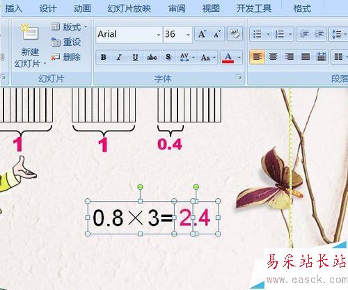 9、再次插入兩個文本框,字體設置如圖。前面寫入式子,后面寫入答案。完成所有材料制作。