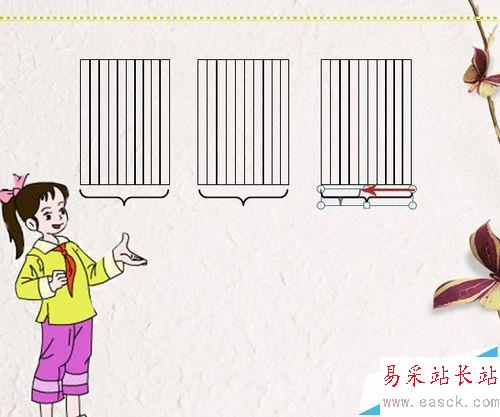7、復制兩個移至后兩個矩形下方,將第三個大括號縮小至4個小矩形范圍。完成大括號制作。
