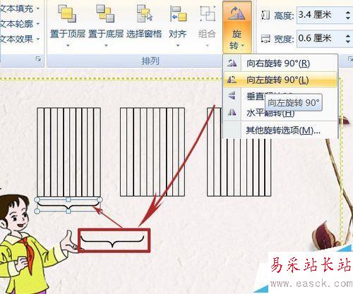 6、工具欄中選擇旋轉——向左旋轉90°,然后拖至第一個大矩形的下方。