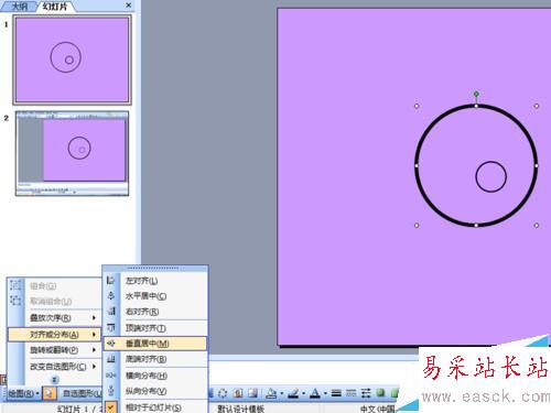 3、選擇大圓,執行繪圖-對齊與分布-垂直居中和水平居中命令,接著選擇小圓進行同樣的操作,調整他們的位置。
