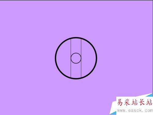 4、選擇繪圖里直線工具,在小圓的外邊繪制兩條垂直的平行線并且與大圓上下相交。