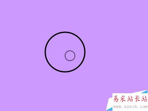 2、選擇繪圖工具里的橢圓工具,按住shift繪制一個大圓和一個小圓,大小圓設置填充顏色為無,線條顏色為黑色,線形大圓設置為6磅,小圓設置為2.25磅。