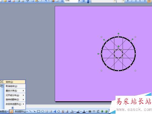 6、執行ctrl+a進行全選,執行繪圖-組合命令,把所有的圖形組合成一個圖形,這樣就形成了一個整體圖形。