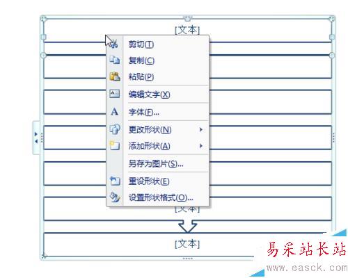 5、創(chuàng)建好流程圖后,可以在流程圖選框中右擊‘編輯文字’也可以點(diǎn)流程圖左邊三角形,在其中編輯文字