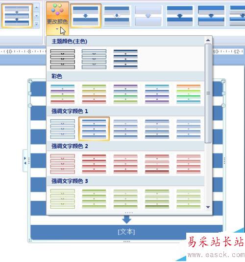 4、為了美觀,我們還可以修改流程圖顏色模式,點(diǎn)擊工具欄的更改顏色,如下圖所示