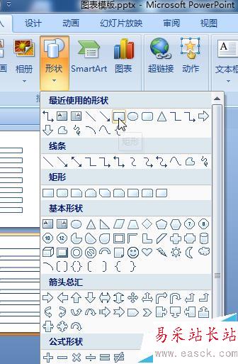 3、然后點(diǎn)擊PPT左上角,添加形狀,在這里我們在修改基礎(chǔ)上添加四個(gè)形狀