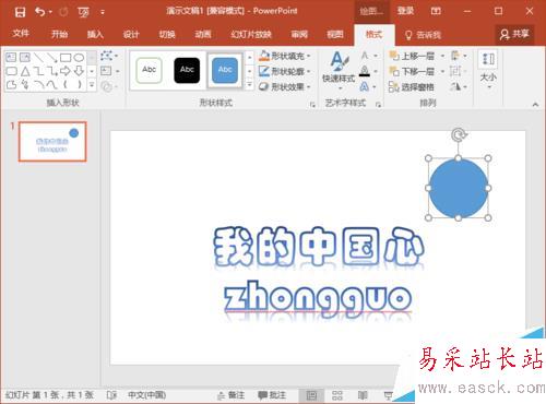 5、字體以及字號(hào)設(shè)置好以后,打開(kāi)“插入”菜單選項(xiàng)卡,依次點(diǎn)擊“形狀”-->“橢圓”形狀。此時(shí)鼠標(biāo)變成十字狀態(tài),按下鍵盤(pán)的Shift鍵,并同時(shí)按下鼠標(biāo),拖動(dòng)鼠標(biāo)來(lái)畫(huà)一個(gè)正圓。這個(gè)圓就是用來(lái)遮蓋文字用的,根據(jù)實(shí)際需要自行調(diào)節(jié)圓的大小以及位置。如圖所示;