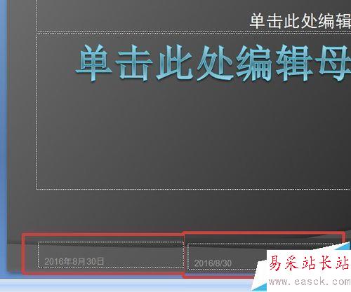 4、更改后的日期樣式與其他幻燈片樣式對(duì)比。