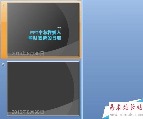 PPT中放入日期,這個(gè)日期不是固定的,會(huì)隨著每天的日期即時(shí)更新。并且每新建一張幻燈片都會(huì)自動(dòng)插入日期。這樣的效果我們可以使用幻燈片母版和頁眉頁腳分別做到。
