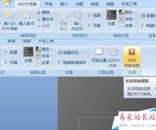 6、然后在視圖中,點(diǎn)擊“關(guān)閉母版視圖”,將母版關(guān)閉。